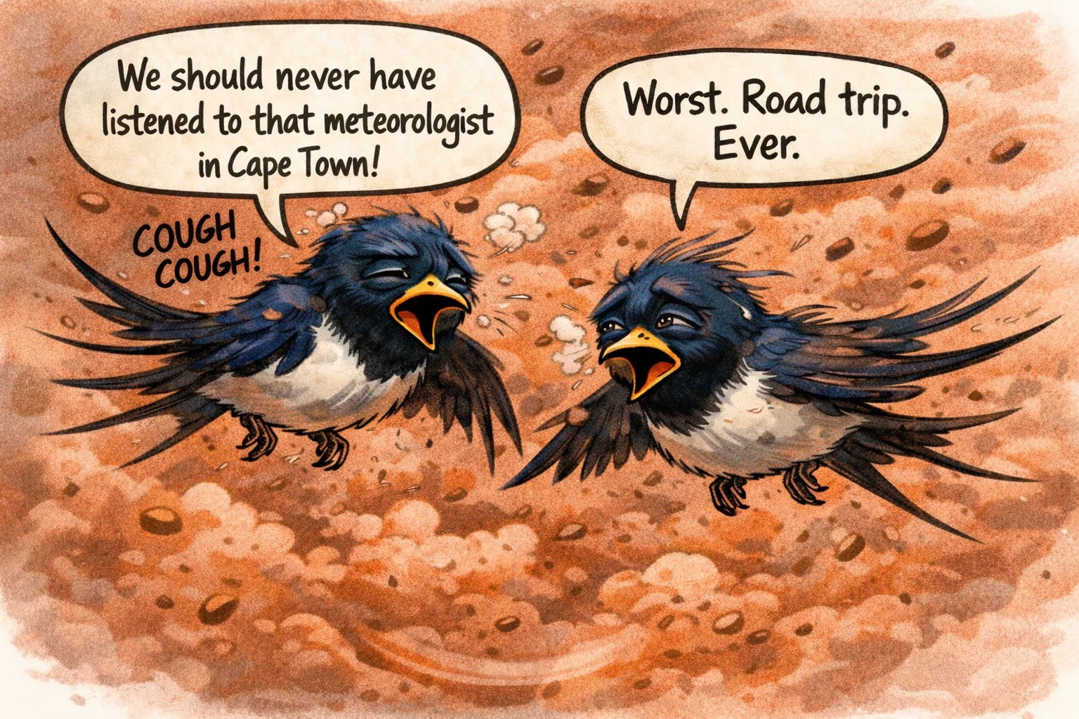 Because while the Sahara was shifting the air we breathe, a flock of birds, each weighing less than a lemon, was navigating the wind with more composure than I had in my own bed. Simply amazing.